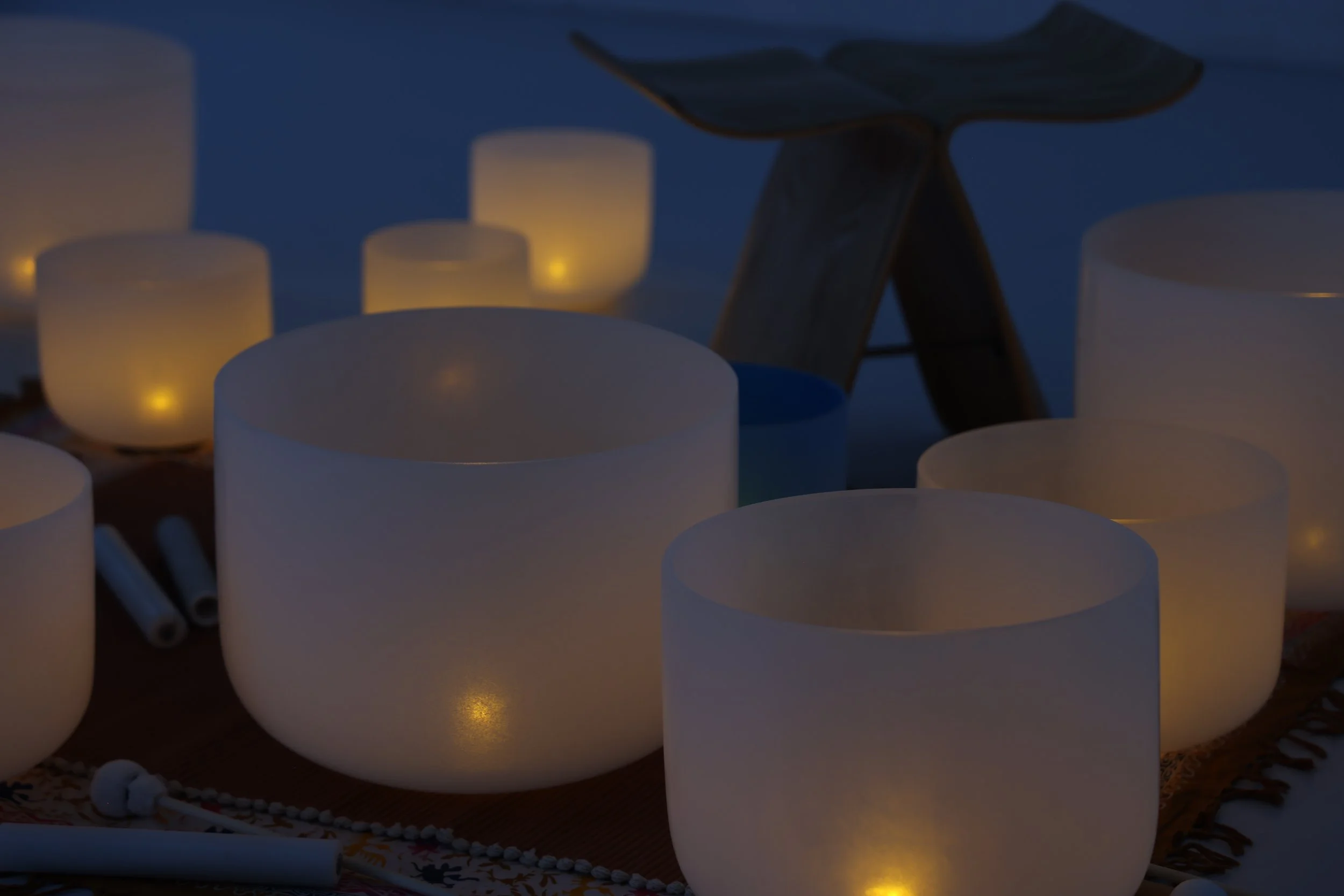 Crystal Singing Bowl Sound Bath Uses sound vibrations to promote relaxation and self-healing. It gifts you with equilibrium and peace for your mind, body and soul-nurturing both your physical and emotional well-being. The calming sounds are believed to reduce stress, enhance mental clarity and improve sleep.